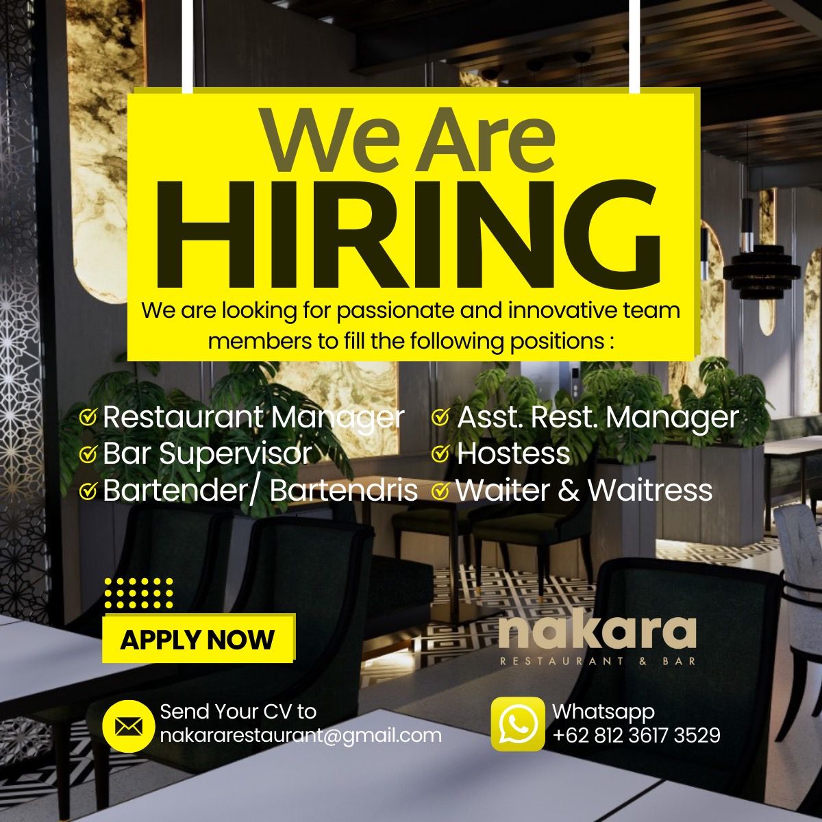 Send your cv to : nakararestaurant@gmail.com or text us on whatsapp +6281236173529