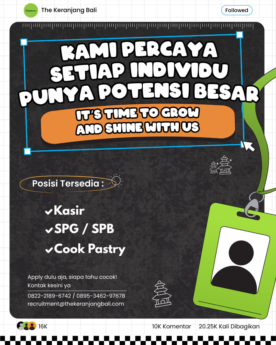 • Jangan lupa sampaikan kamu mendapat Info Lowongan dari LowonganHotelBali.com