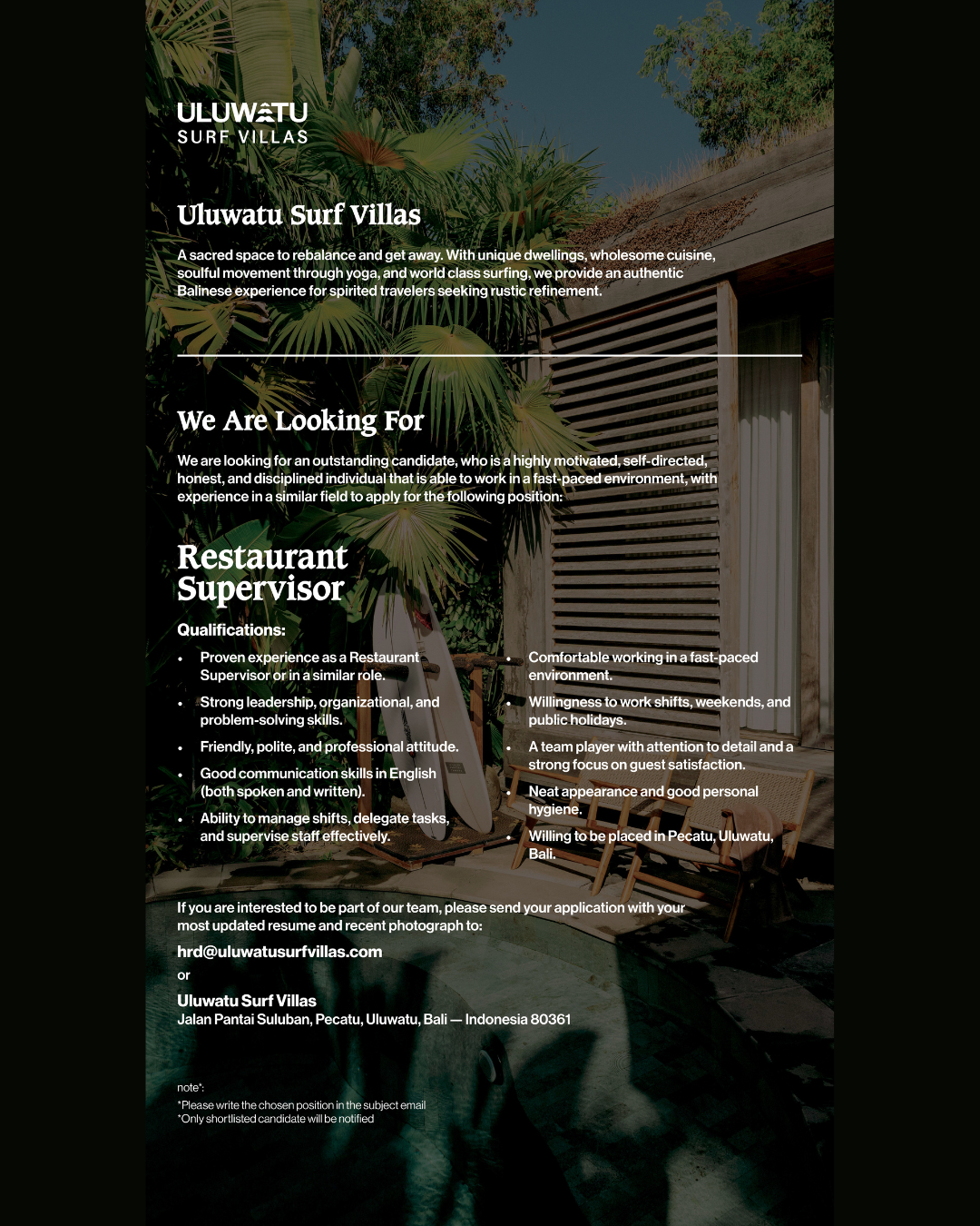 - Jangan lupa sampaikan kamu mendapat Info Lowongan dari LowonganHotelBali.com